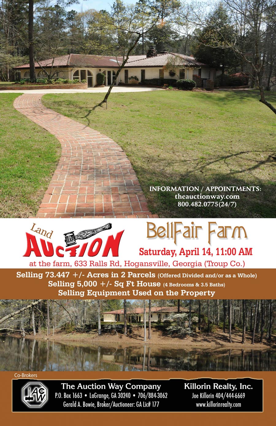 The Auction Way Company Auctions The Auction Way Co - PO Box 1663, LaGrange, Ga. 30240 Gerald Bowie Ga Lic # 177 Gerald M Bowie Ga Lic # 1045 800.482.0775 Office 706.884.3062 Killorin Realty, Inc Joe Killorin 404.444.6669