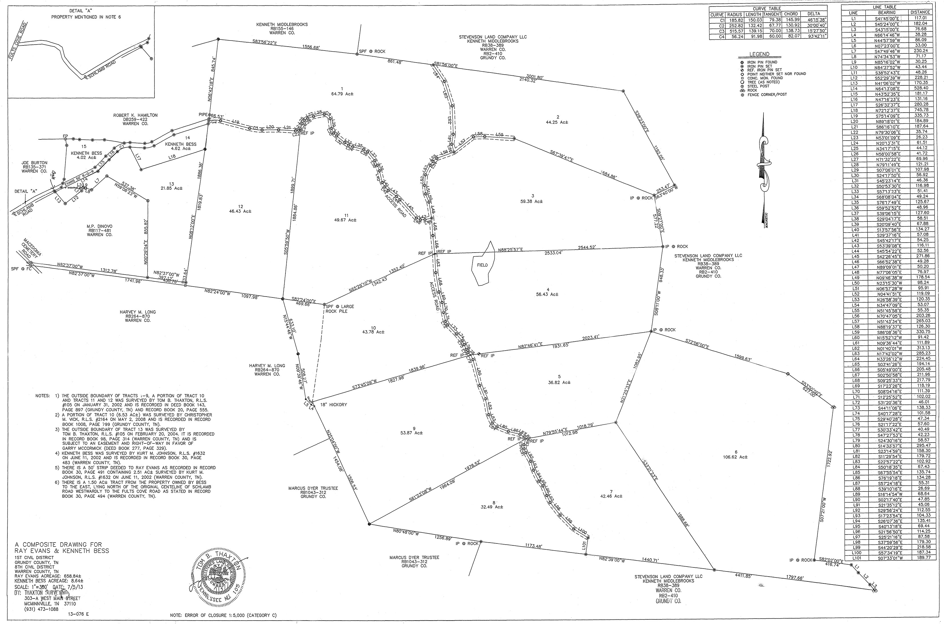 Survey: By Thaxton Surveying, 303 A West Main Street, McMinnville, Tn. 37110; (931) 473-1088.